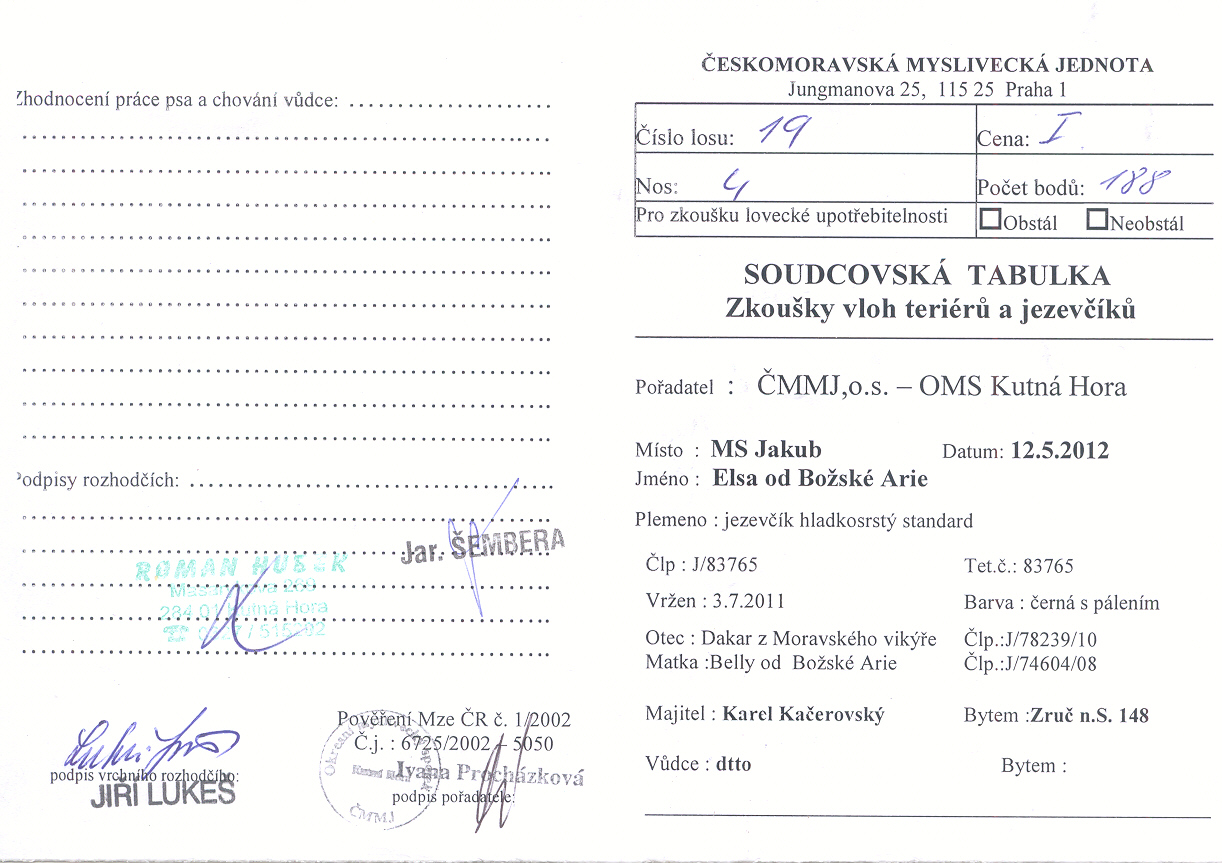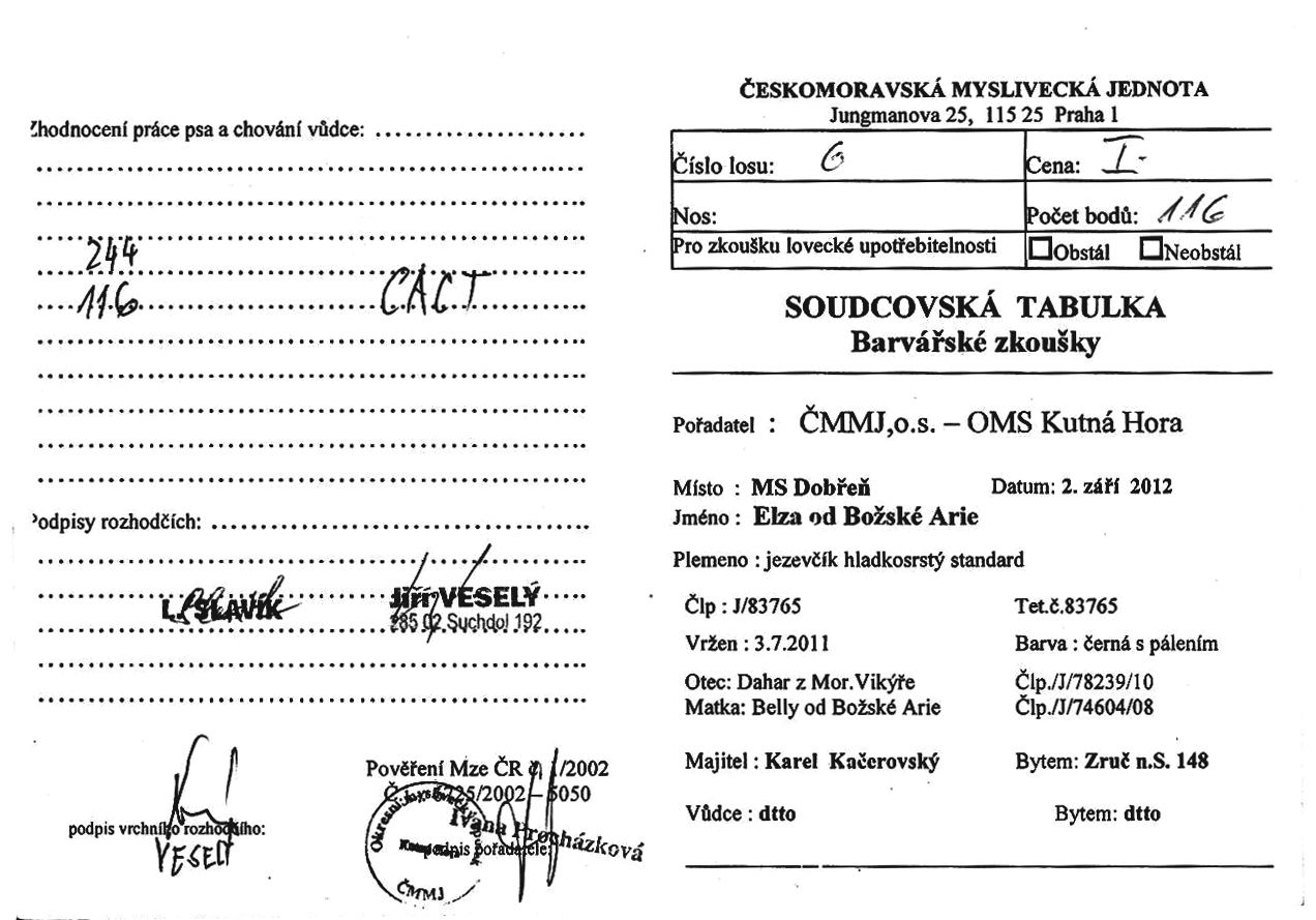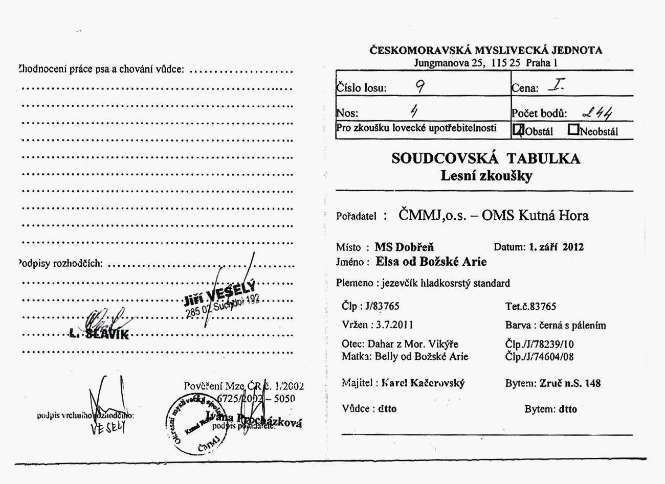 | 1.9.2012 | Lesní zkoušky | 244 | 1 | CACT o KH groš LZ1 LZ2 |