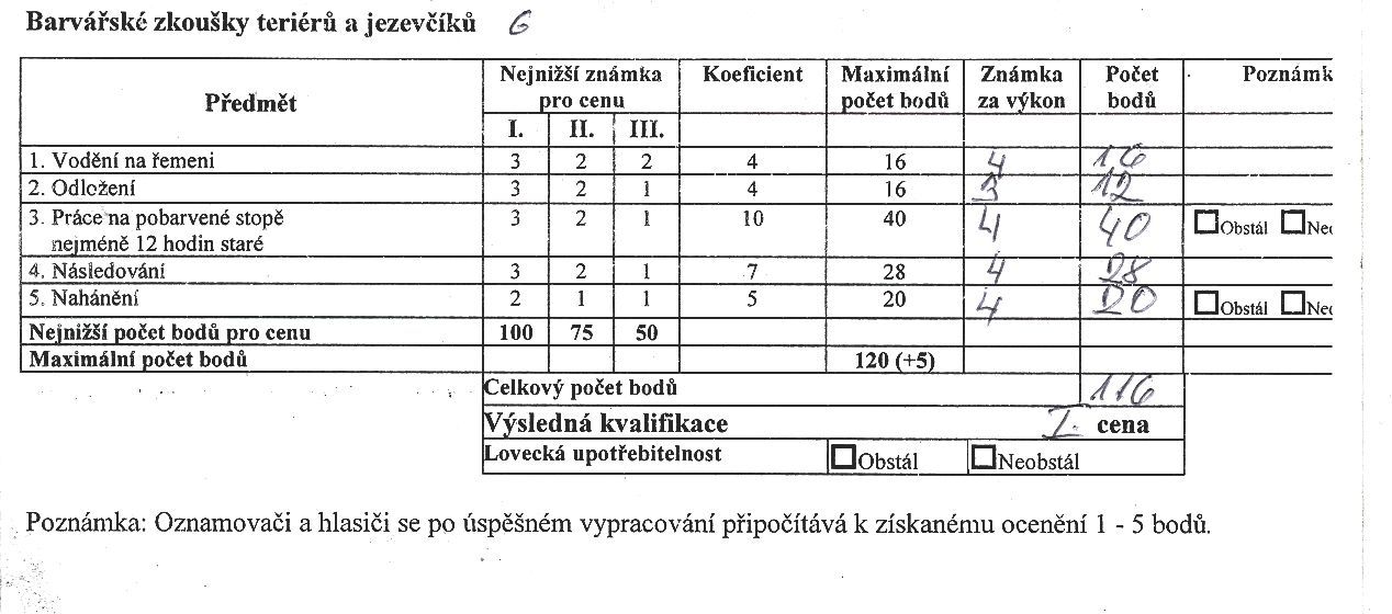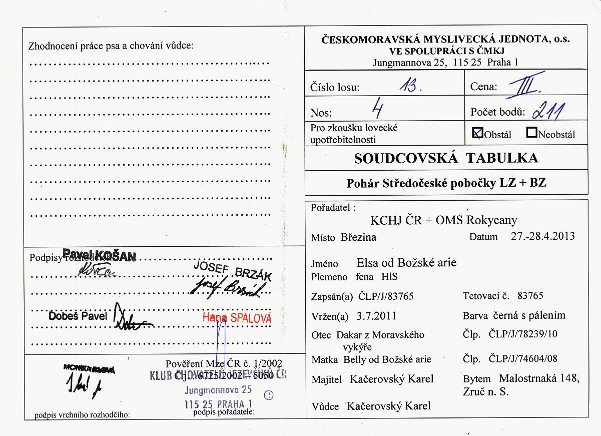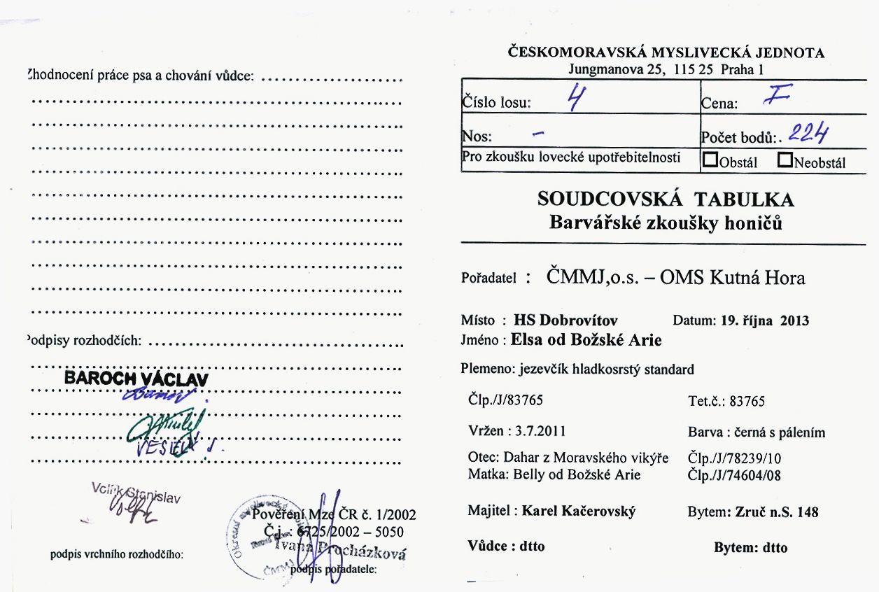 | 19.10. 2013 | Bar. zkoušky honičů | 224 | 1 | BZH1 BZH2 |